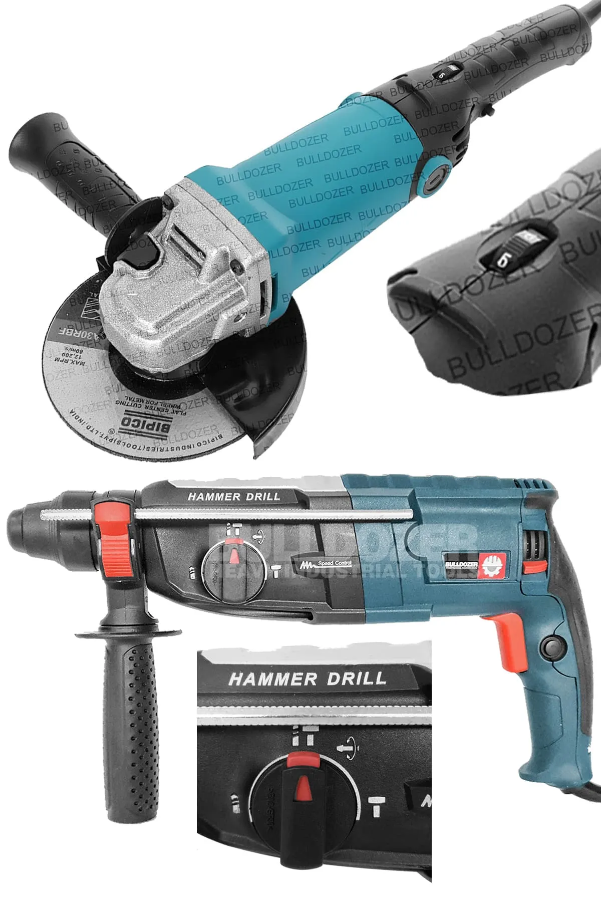 Bulldozer 1200W Kırıcı Delici 4 Joul Darbeli Matkap (MAVİ) 5 ADET KIRICI UÇ VE 600W AVUÇ TAŞLAMA 5 ADET TAŞLAMA DİSK HEDİYE